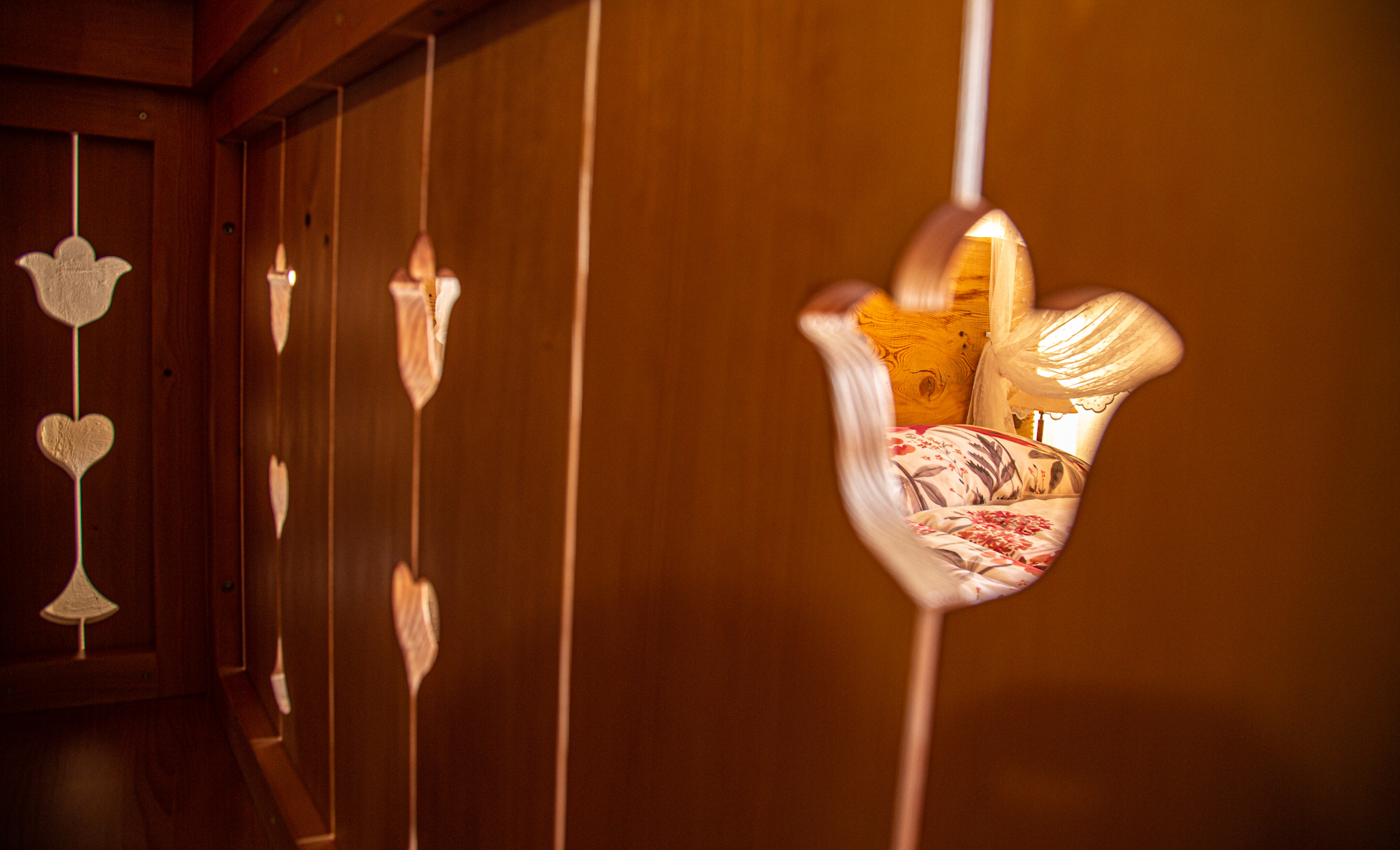 La Suite Gaudi avec cachet offre une véranda privative au sol moelleux avec vue imprenable sur les montagnes, la plaine et le coucher de soleil. La cuisine habitable attenante est agrémentée d’un magnifique potager électrique et à bois. Un salon complète ce premier étage.