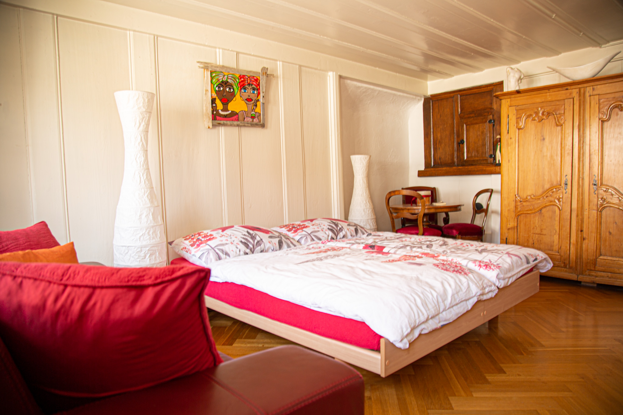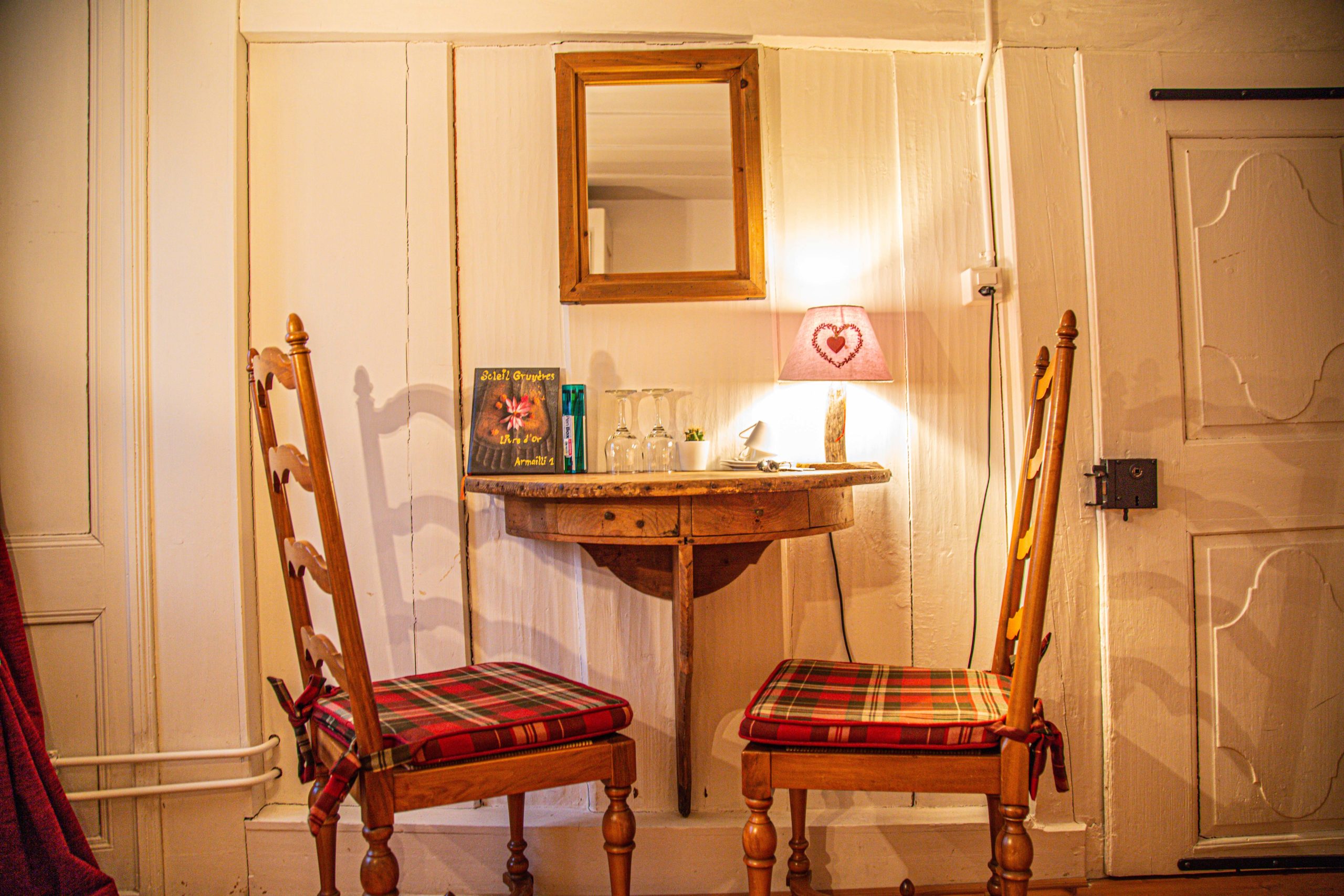 Au Soleil de Gruyères c’est le « home away from home » avec cachet et créativité. L’hébergement comprend l’appartement Mosaïque avec terrasse privée côté bourg, la Suite Gaudi appartement avec son cachet atypique sur 3 étages, l’appartement Véranda avec vue splendide sur les montagnes, ainsi que 3 chambres doubles personnalisées, Armailli, Tilleul, Balcon, avec la vue côté montagnes ou côté bourg. Literie complète, WC- douche privé, sèche-cheveux, café, thé, frigo, toaster et table sont à votre disposition dans chaque chambre.