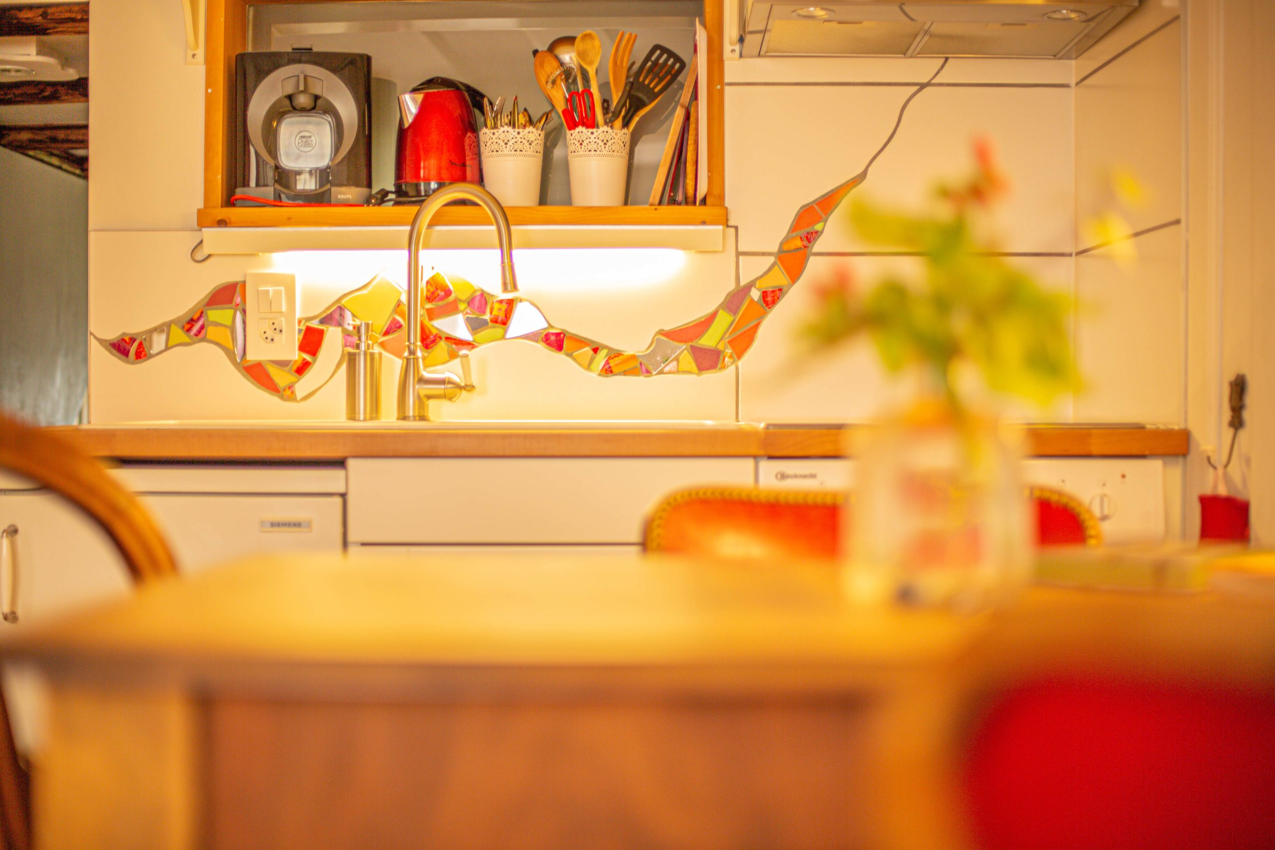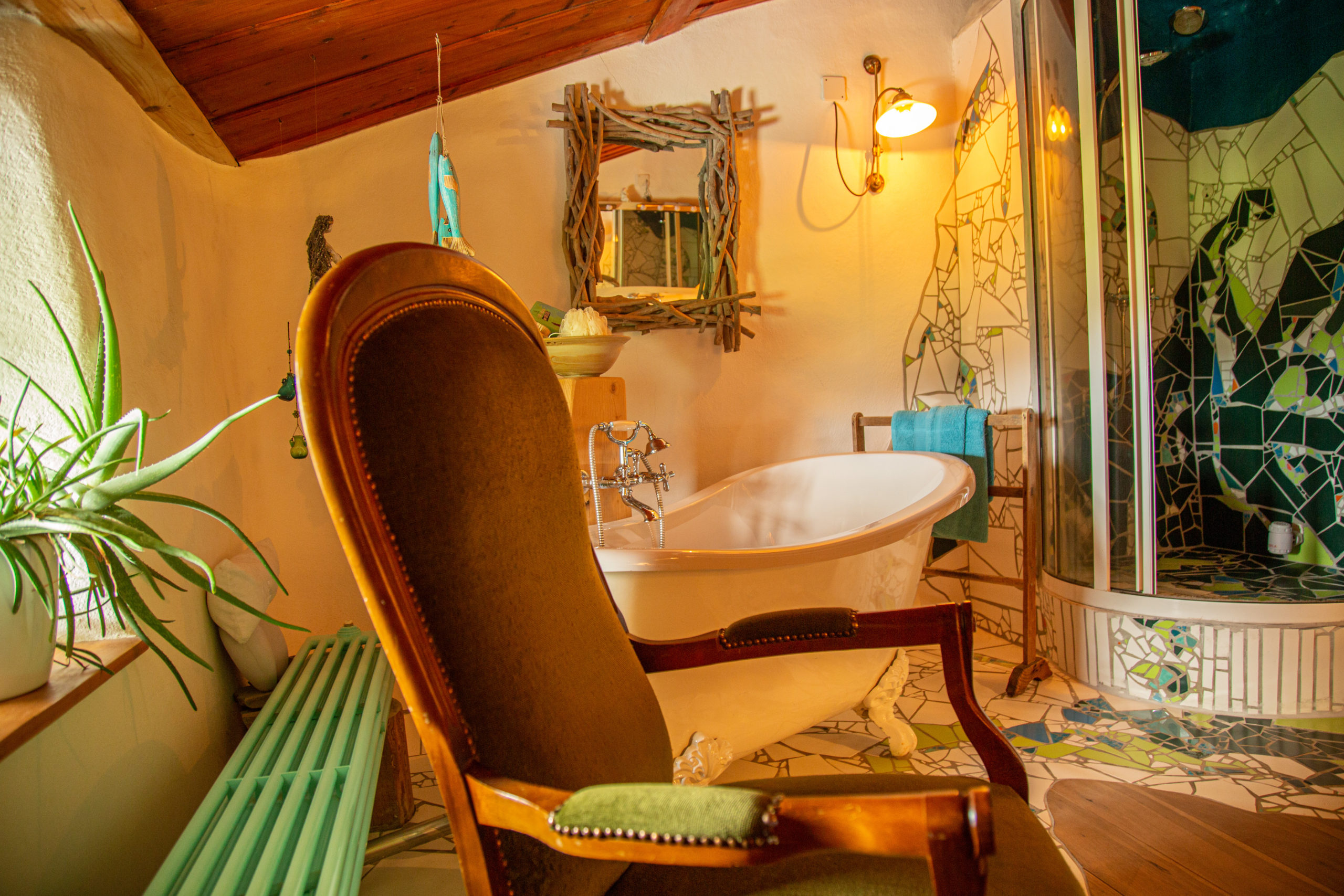 L’appartement Mosaïque situé au rez-de-chaussée, a été créé pour vous qui aimez ce qui sort de l’ordinaire. Ses hôtes, inspirés par Niki de St-Phalle et Gaudi, ont mis tout leur cœur à un aménagement de caractère dans l’idée de vous choyer. Idéal pour deux, voire trois ou quatre personnes :